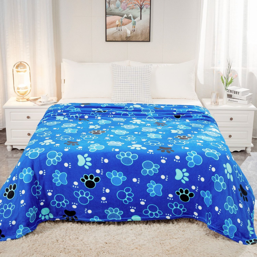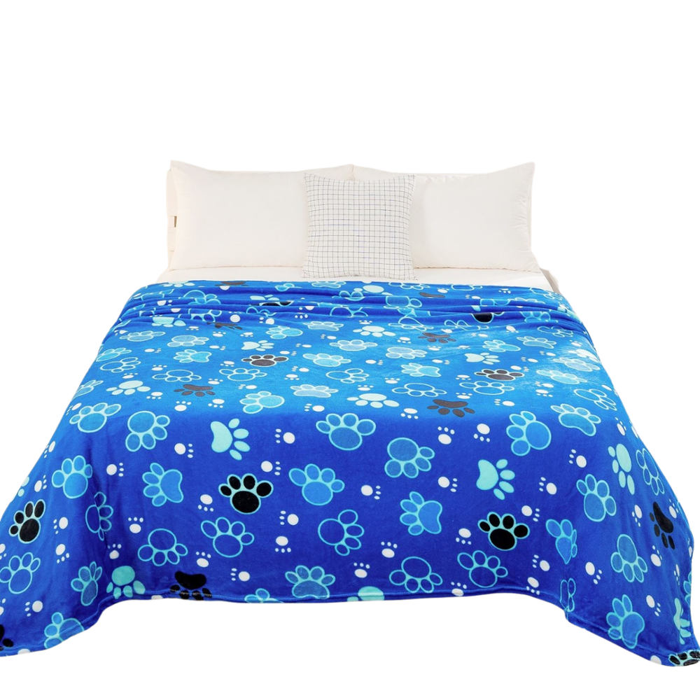 Frazada Luxury Blue Paw Matrimonial Medida 190x230 cm. En tonos de azul con huellitas. Alegre y tierno, ideal para quienes aman las mascotas o buscan un estilo divertido. Su textura extra suave y ligera brinda una sensación de abrigo perfecto durante todo el año, mientras su color azul profundo aporta tranquilidad y estilo a la habitación.