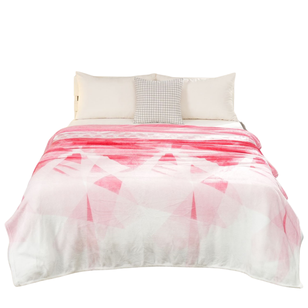 Frazada Luxury Rose Dream Matrimonial Medida 190x230 cm. Fondo blanco y degradado en rosa con formas abstractas. Femenino, moderno y visualmente suave. Su textura extra suave y ligera brinda una sensación de abrigo perfecto durante todo el año, mientras su color azul profundo aporta tranquilidad y estilo a la habitación.