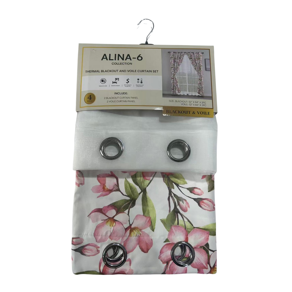 Cortina Blackout Thermal - Alina 6 Blanco / Rosa. Disfruta el equilibrio perfecto entre diseño y funcionalidad con este set de 4 paneles que combinan con la suavidad del voile con la proteccion térmica del blackout. Incluye: 2 paneles Blackout (medida total 2.74 m ancho x 2.13 m largo) y 2 Paneles Traslucidos (Medida total 2.74 m ancho x 2.13 m largo). ¡Duerme mejor y decora con estilo!. Agrega tu Cortina Victoria al carrito y transforma tu hogar hoy mismo.