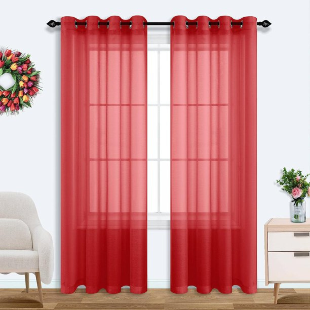 Cortina Tergal Lisa - Ruby Rojo. Transforma tus espacios con elegancia y fescura. Permite el paso de luz suave, creando un ambiente acogedor y luminoso