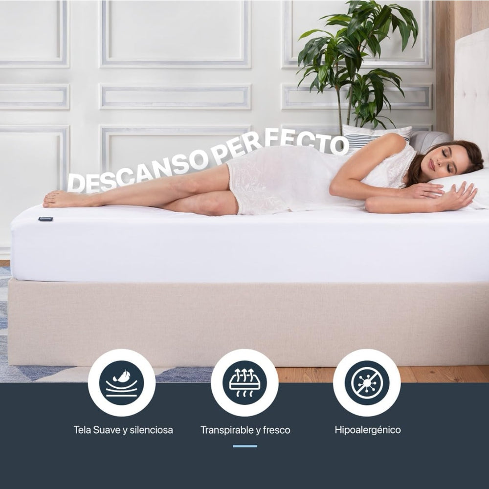 Protector de Colchon Impermeable Algodon King Size - Monserrat. Protege tu descanso con suavidad y frescura, diseñado para mantener tu cama siempre limpia, seca y fresca, con su cara exterior en toalla 100 por ciento algodón. Su capra interior evita filtraciones de líquidos. Facil de lavar, ajuste perfecto, ideal para colchon alto. Prolonga la vida útil de tu colchon